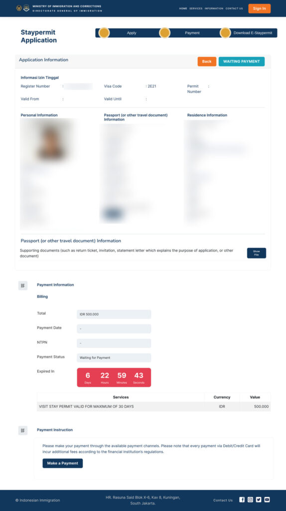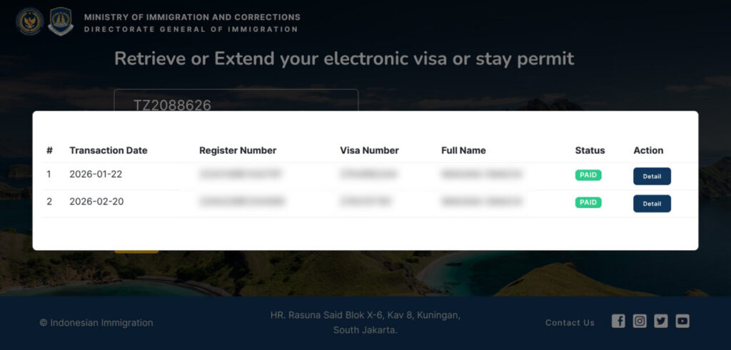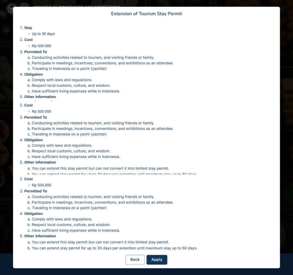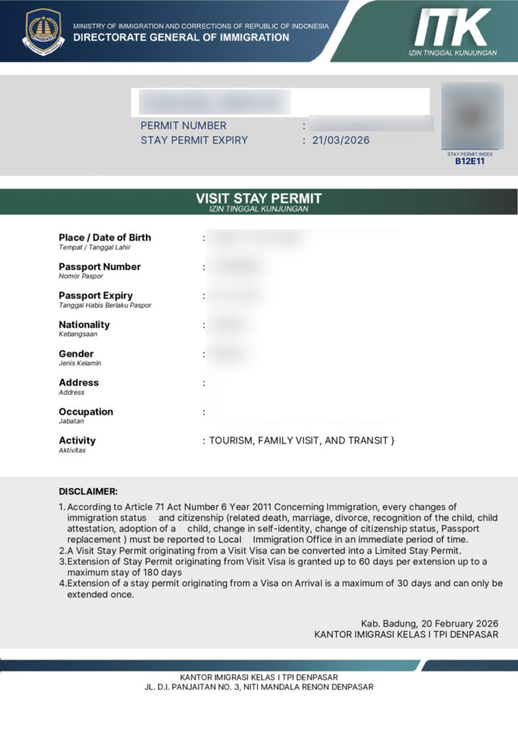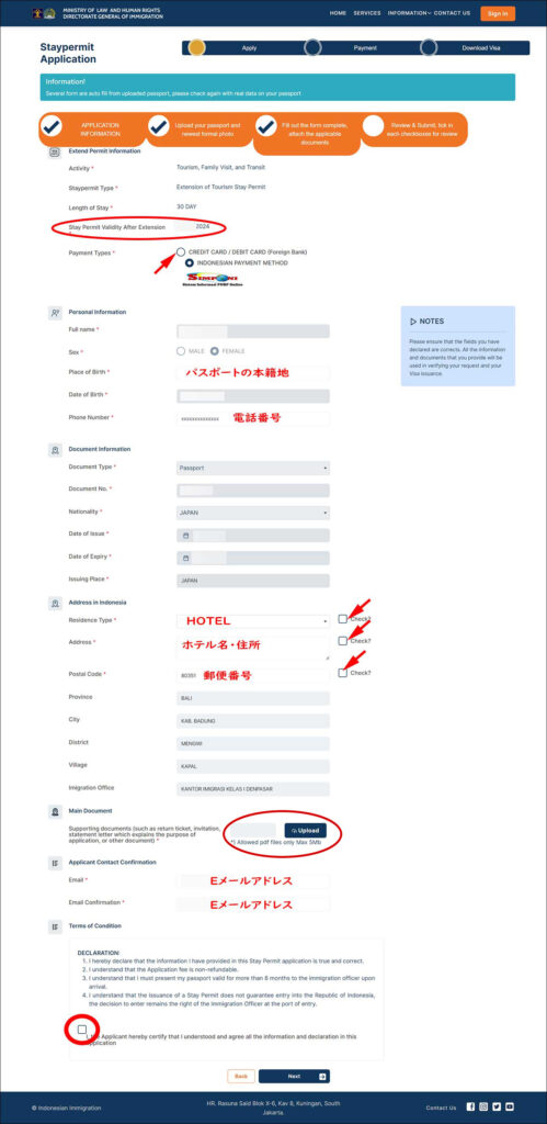 ただし、空港窓口でVOAを取得した時にメールアドレスを登録していない場合、滞在許可証(ITK)が送られてこないので、その場合はオンライン延長手続きができない可能性もあります。