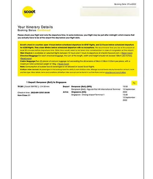 - 帰りの飛行機のチケット(予約表やeチケット)