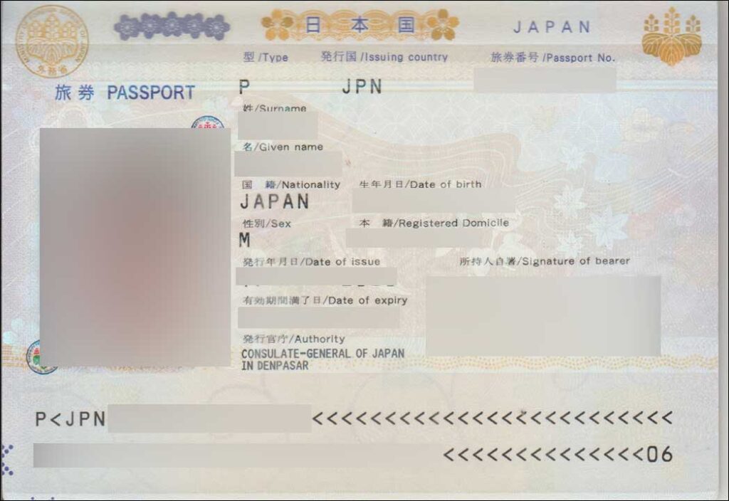 自身のパスポートのデータ面のJpegファイル。